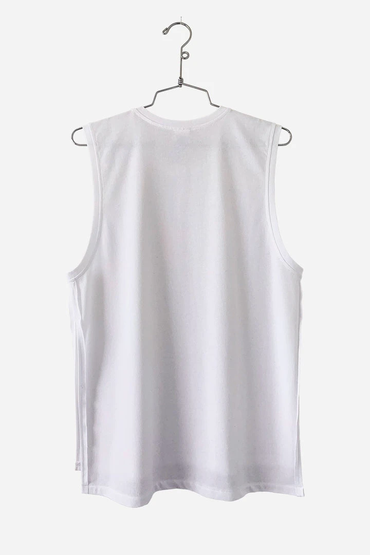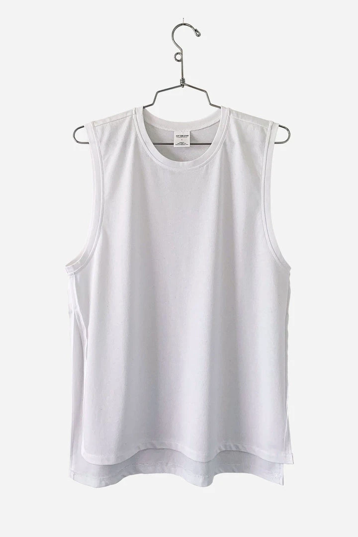 A relaxed fit, drop armhole, crew neck tank with high-low hem and side slits.Â