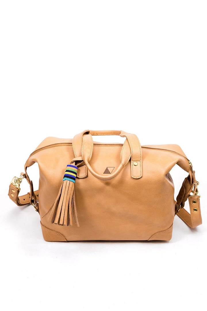 Each bag is handmade from ethically and locally-sourced Maasai cow leather. The beadwork is hand stitched by Maasai women who are able to stay at home with their families while crafting their incredible products. Abby Alley works exclusively with artisan cooperatives that provide fair wages, safe working environments, and work with ethically sourced materials.