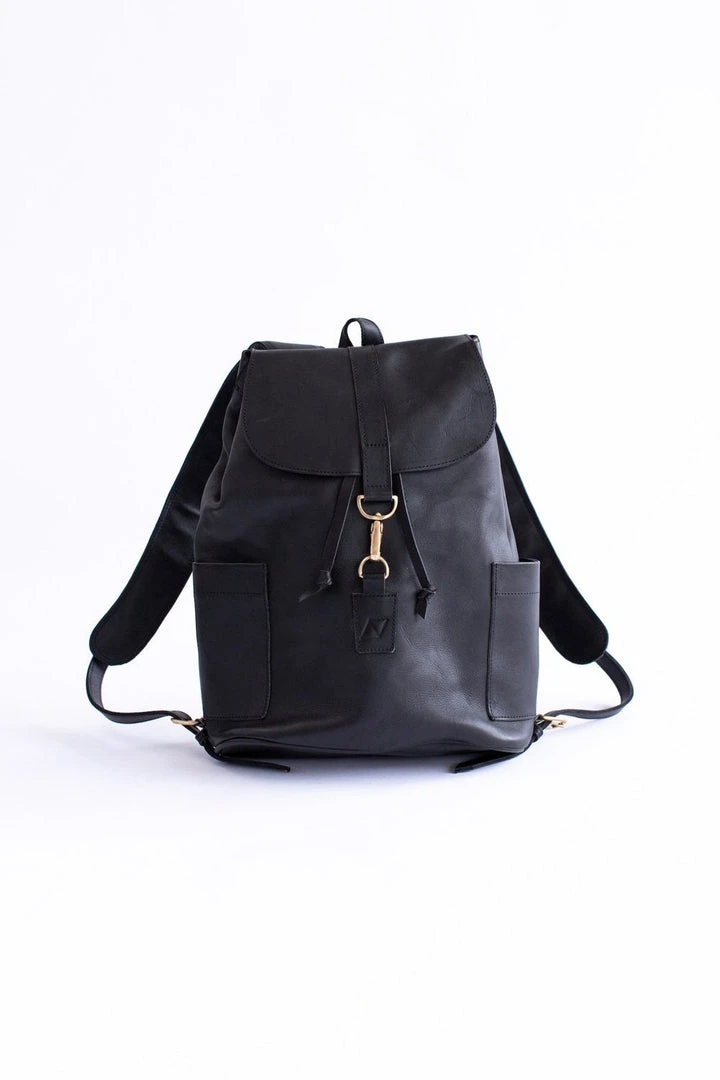 Beauty meets function in the Black Adelaide Backpack, a generously sized, chic backpack that you’ll love for work, travel, and everyday use. Handcrafted by artisans using eco-friendly, vegetable tanned leather. Featuring a padded laptop pocket, two interior and exterior pockets, a back safety pocket, and trigger-hook closure to keep your valuables on hand and organized.