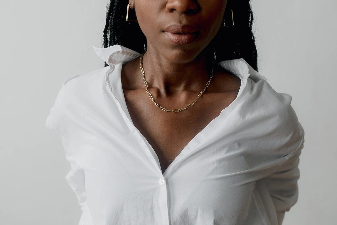 The perfect chain necklace with a rectangular shape link. The hook closure allows for adjustable lengths as well as to wear it as a “Y necklace” in the front. Beautiful alone or layered.