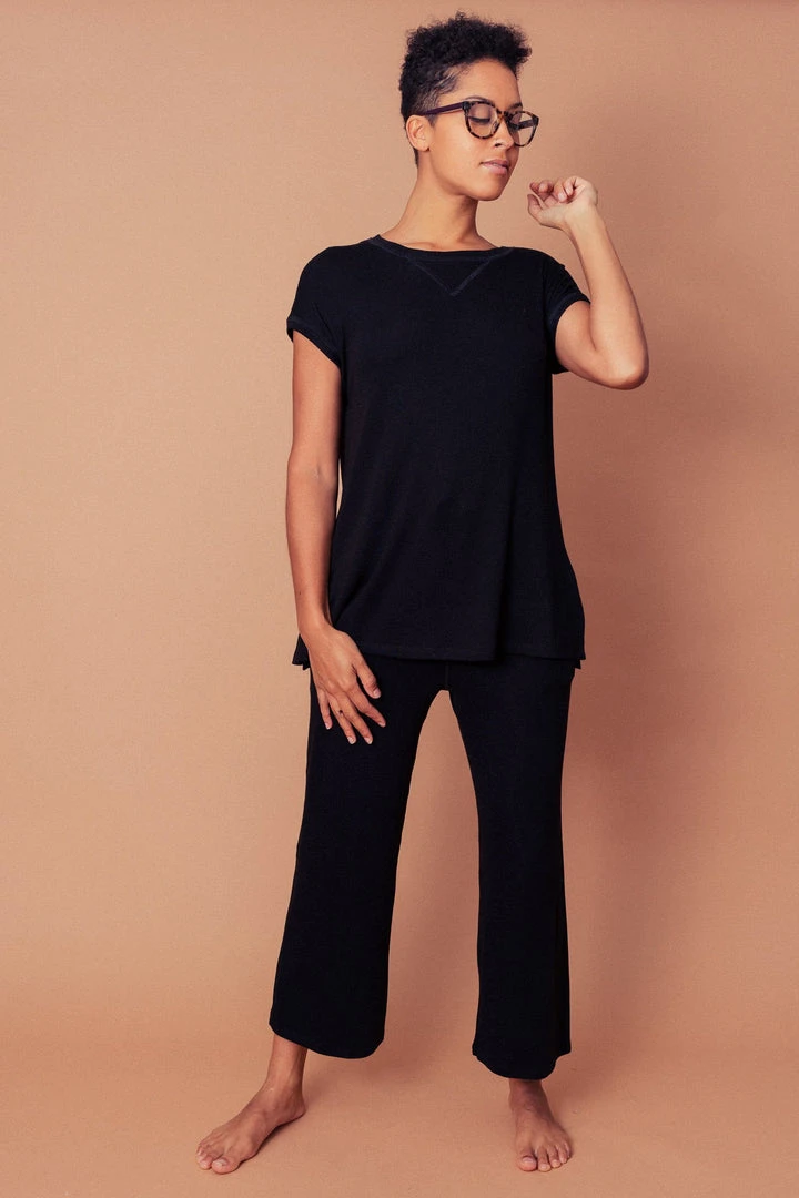 The Ronnie Lounge Bottoms in Black are made from a silky soft rib knit Tencel that is Lenzing certified modal.