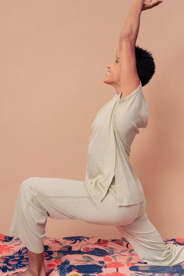 The Ronnie Lounge Bottoms in Mint are made from a silky soft rib knit Tencel that is Lenzing certified modal.