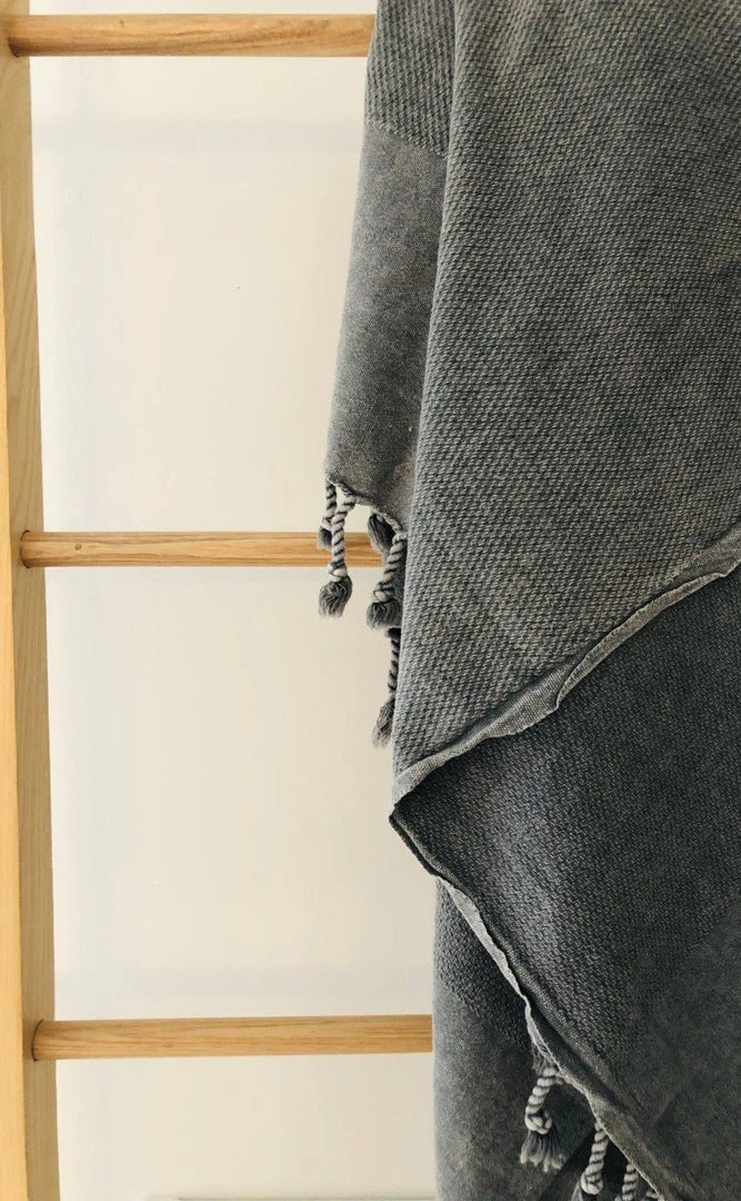 The Arete throw towel can be used both in the home, beach, or as a scarf! It’s beautiful textured pattern adds layer and detail to any space.