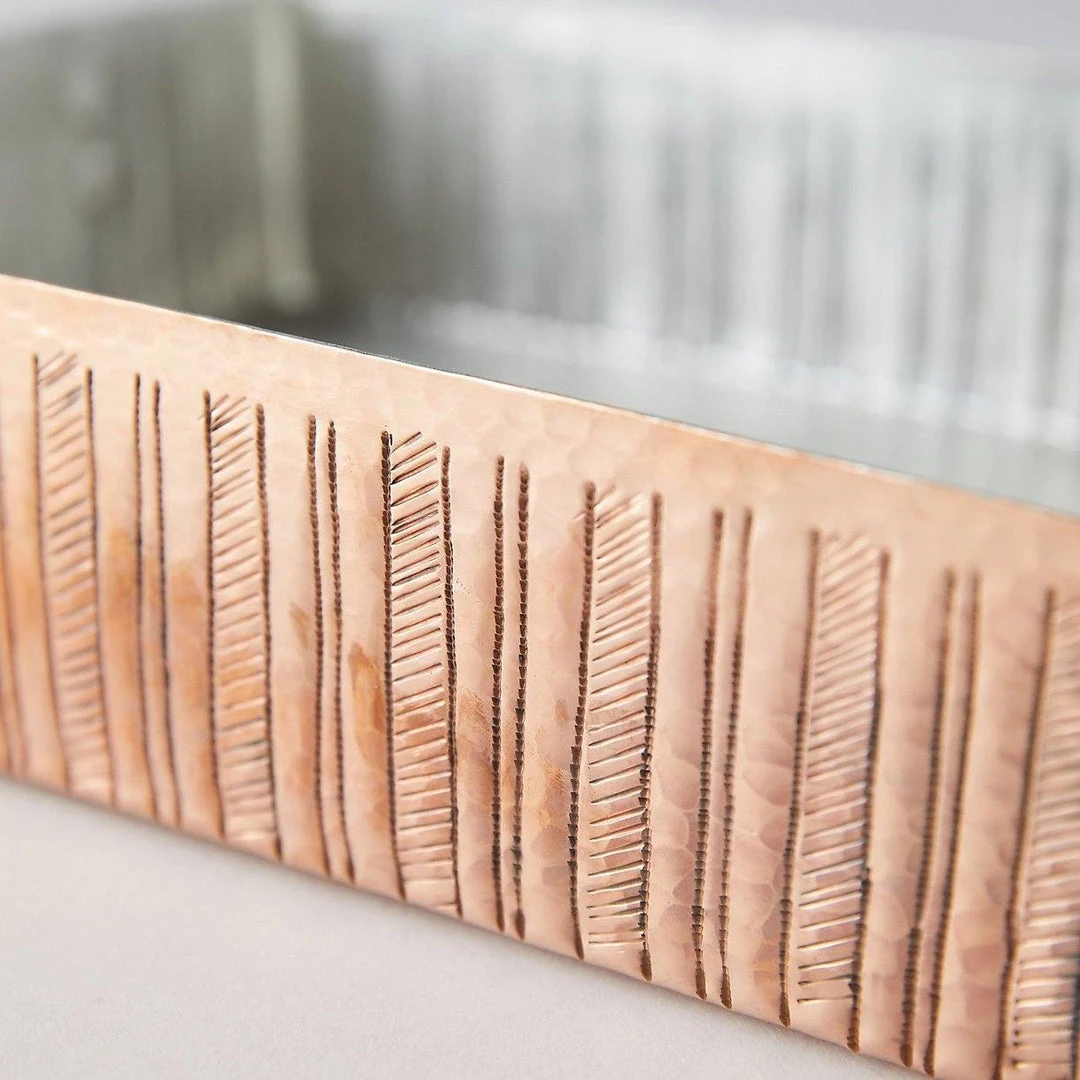 • Crafted from 100% recycled and hammered copper, copper handles, tin lined