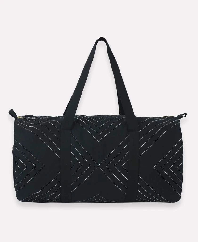 Hand-stitched with an arrow geometric design, this organic cotton overnight bag is spacious for all of your clothes and travel essentials for a weekend away. Pair with your favorite zipper pouch or toiletry bag for a more organized trip.