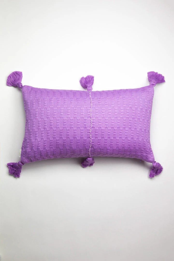 This orchid pillow is inspired by traditional textiles from Almolonga, Guatemala. The cotton used to make this pillow was handwoven by artisans using a back-strap loom.