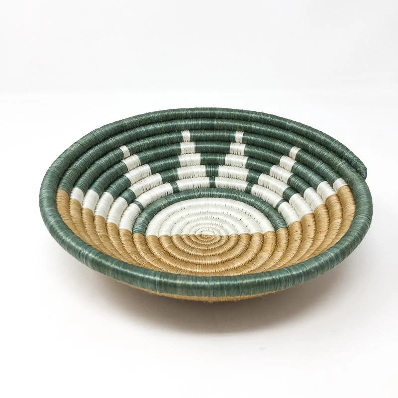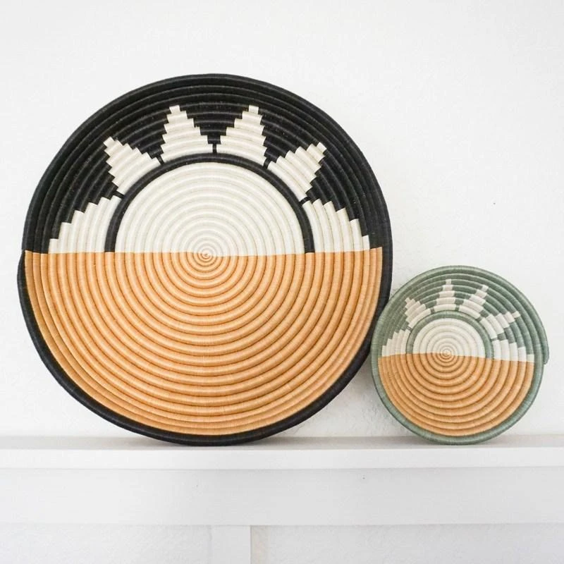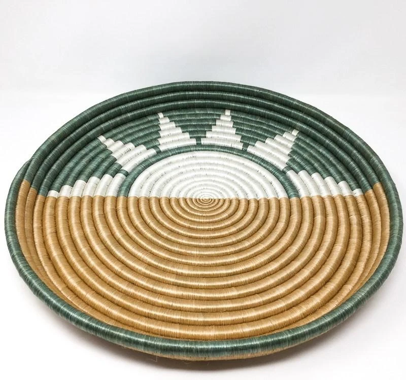 The Zubita handwoven bowl features rising and setting sun rays shining up from the horizon. The Zubita Woven Bowl serves as both a functional and decorative piece and can be combined with the Zuba Woven Bowl or stand alone to make a unique statement.