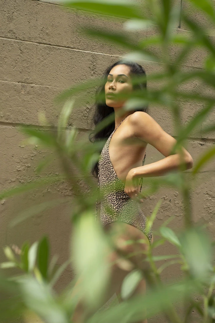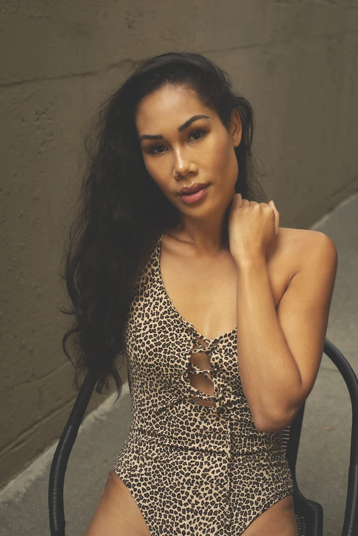 This monokini, inspired by the spots on a leopard, features lace detailing down the front along with adjustable ties on the neck and back. Made of textured eco-friendly Amni Soul Eco® yarn that provides UV protection, this swim set is looking out for both the earth and your skin.