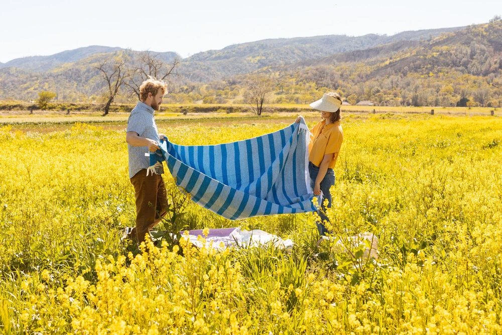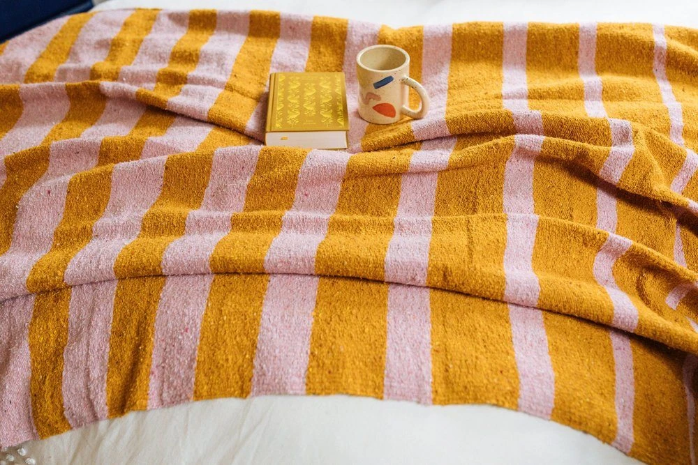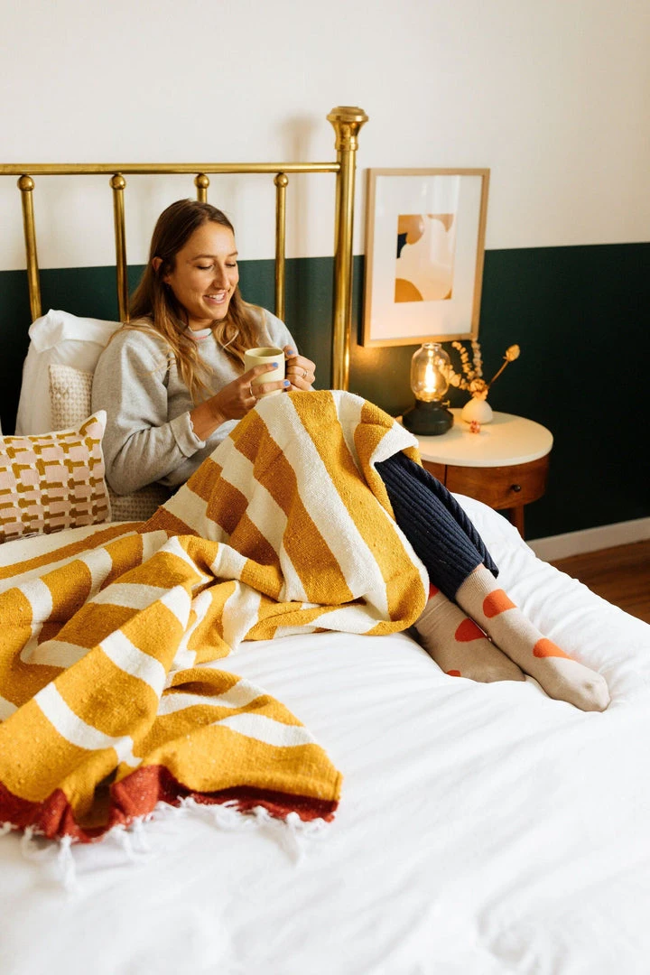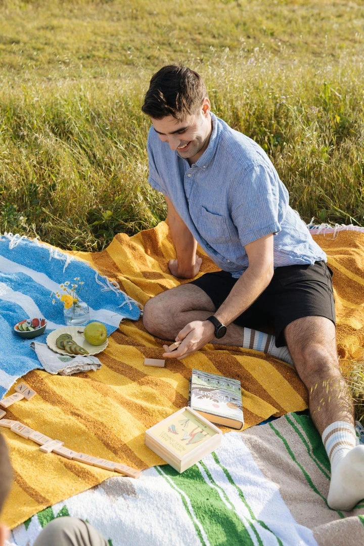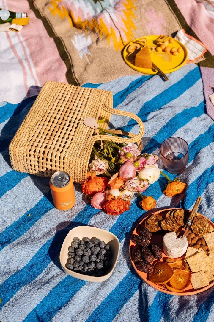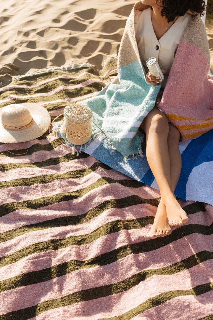 The Marea Collection is inspired by the rising and falling tides. Simple stripes takes on new life with a gradient pattern. These blankets are perfect for park picnics or keeping warm around a campfire. They are big enough for a 2 – 4 person picnic and roll up in thirds for easy transport. These modern, vibrant blankets are handwoven in Mexico using upcycled yarn from the garment industry.