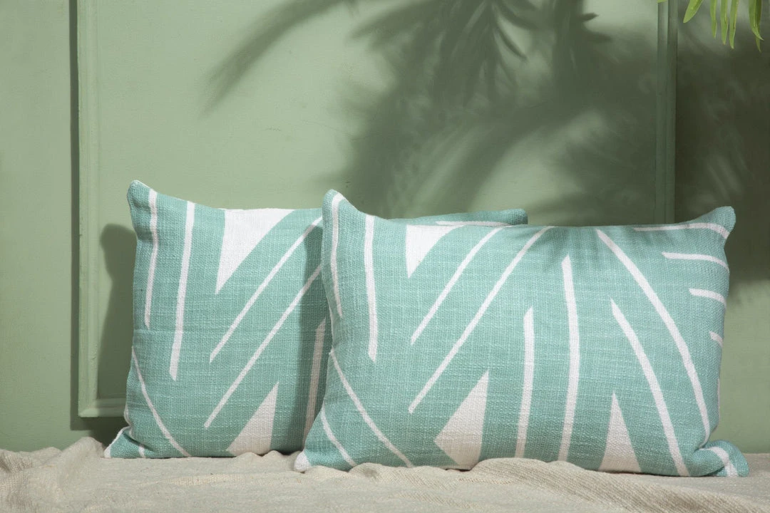 The Stripe Sky lumbar pillow features a hand block printed design to add a bold pop of texture and pattern to your favorite sitting areas.Â