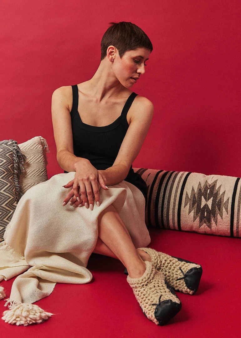 These beautiful fair trade slippers are handmade in small batches by women artisans in Patagonia, Chile with 100% locally sourced, sustainable materials. Hand knitted with Patagonia sheep’s wool and stitched with vegetable tanned cow leather for the outsole. Over time, these comfy slippers conform to the shape of your feet to fit just perfectly.