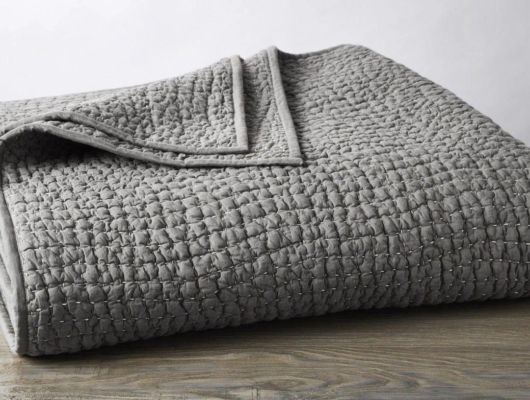 This quilt is hand embroidered with waves of tiny, contrasting stitches, for great texture and color from end to end. Crafted of soft, breathable organic cotton, inside and out, it’s ideal for year-round use – perfect on its own in the warm months and easy to layer with a blanket or duvet for wintry nights.