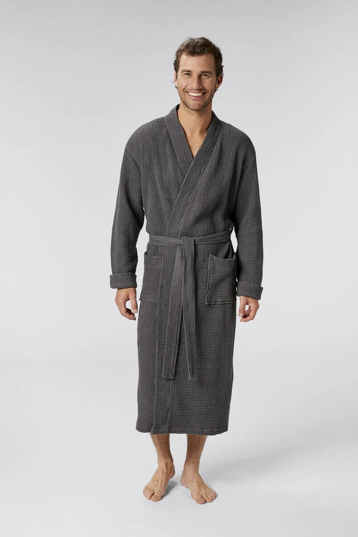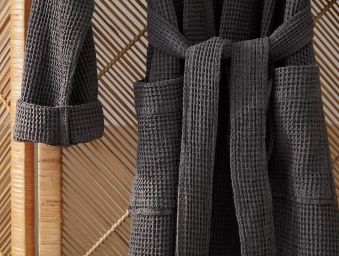 The classic spa bathrobe. Made from organic cotton in an airy, drapey waffle weave, it’s prewashed to be soft from day one and gets more so with every wash. Styled for men or women with a streamlined fit that keeps it comfortable and flattering with double belt-loops. All of Coyuchi’s organic cotton products are machine washable.