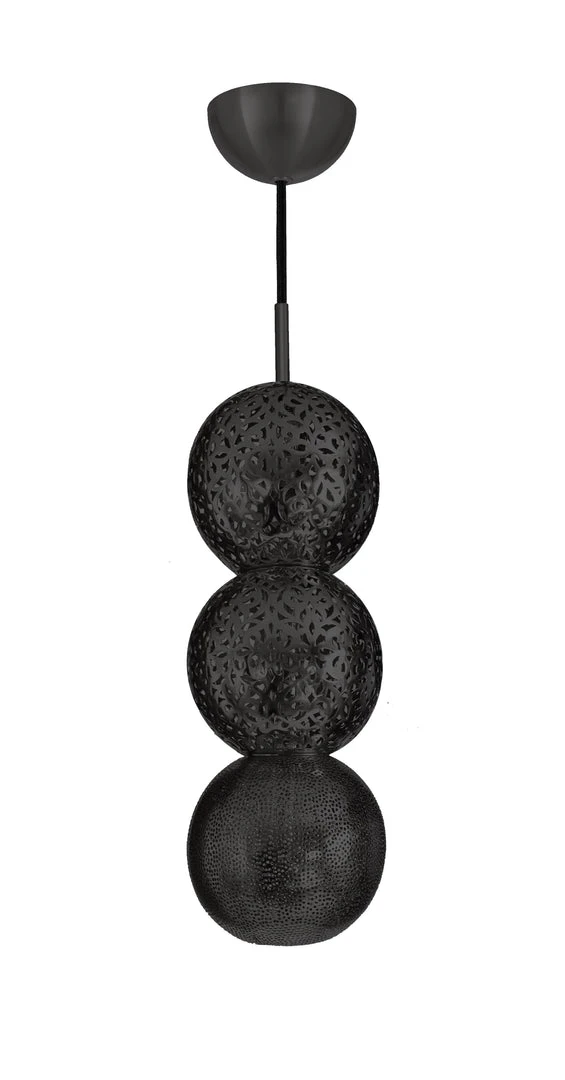 Dounia designed this beautiful hand-cut light fixture to give the classic filigree design a modern update. Not only did they make the filigree floral pattern more modern but they also introduced a simple hand pierced spherical shade at its base. Making the overall chandelier sophisticated and glamorous.