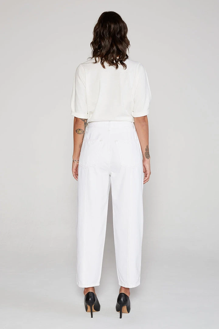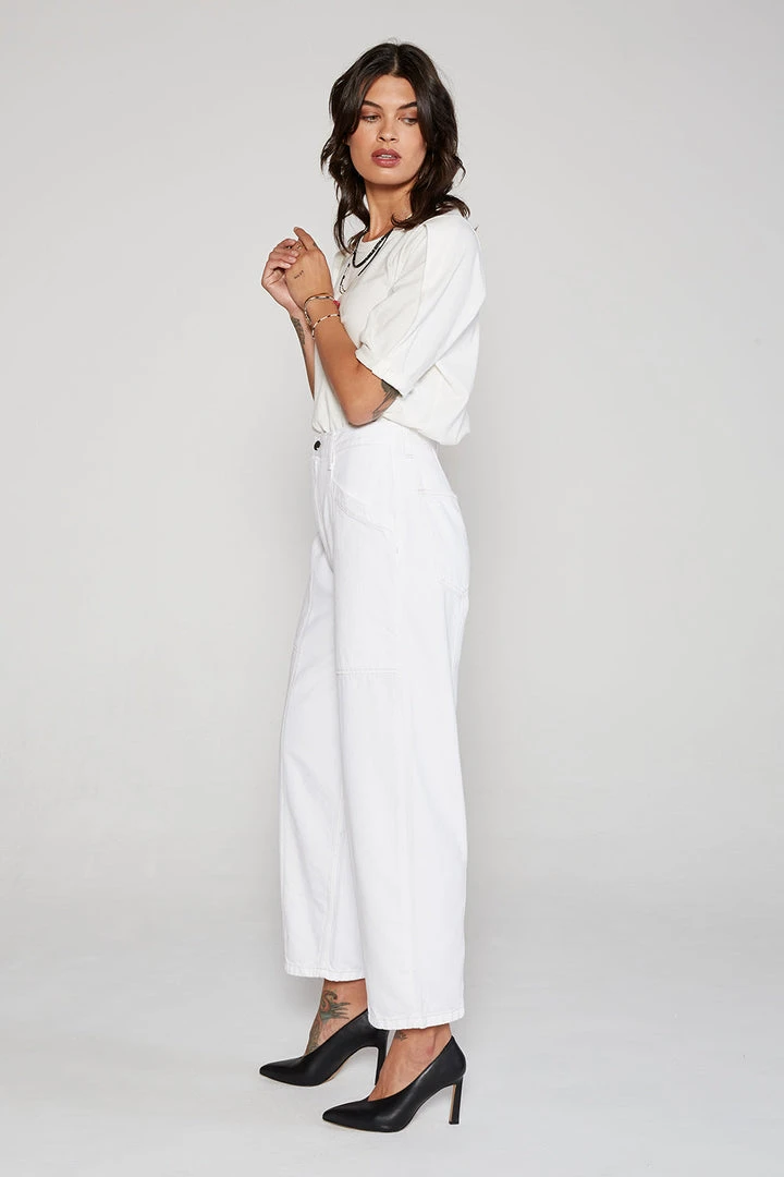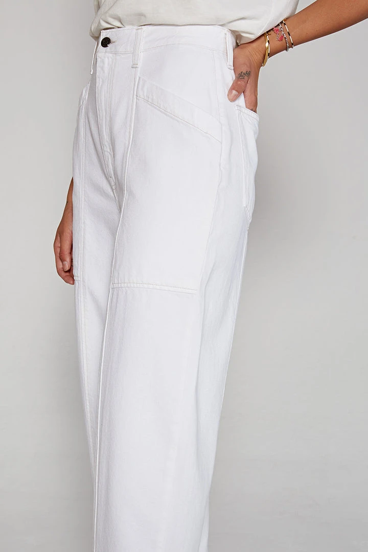 A clean, relaxed fit pant with a high rise and a subtle taper to the leg in Vintage White. Utility pockets and seaming details finish the look.