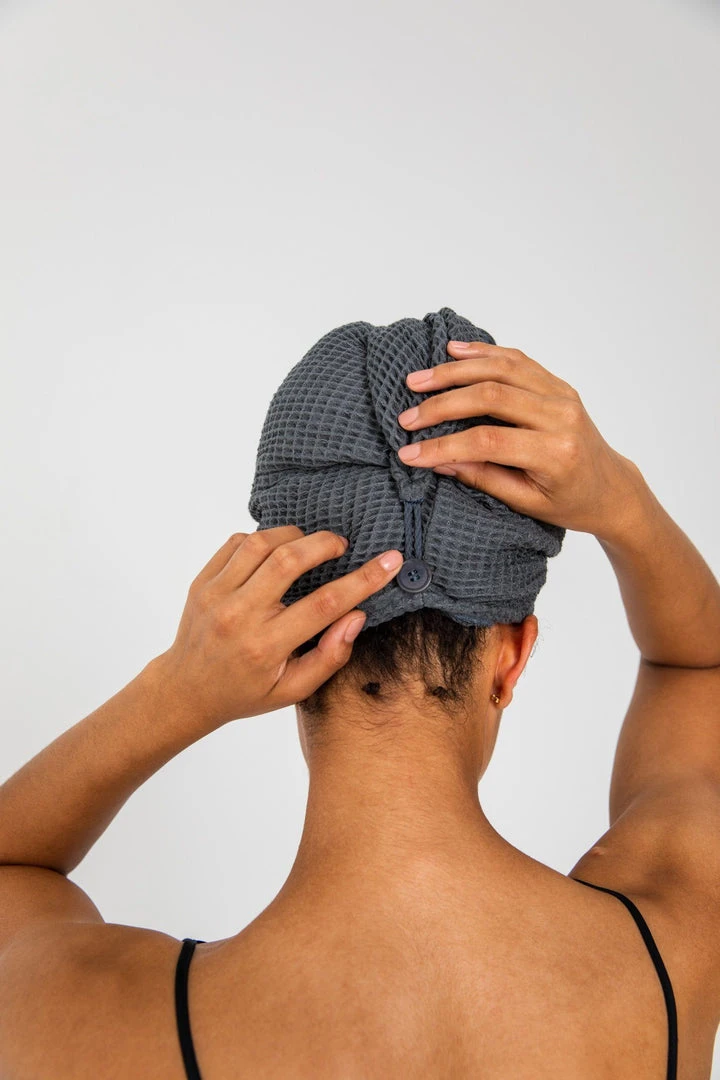 Save time with this super absorbent towel that’s gentle on hair. Quickly go from wet to damp and say goodbye to the frizz, friction and flyaways caused by ordinary towels. Includes one hair towel, prewashed and packaged in a reusable drawstring bag made from recycled water bottles.