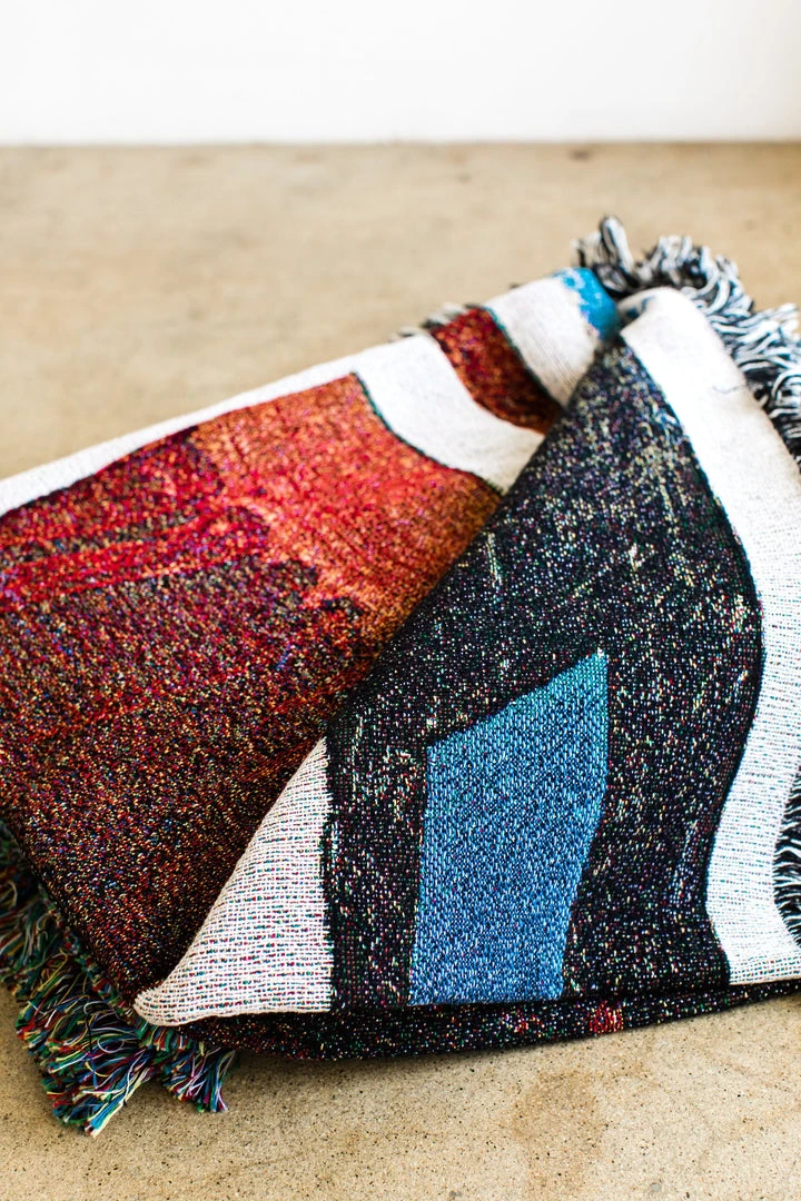 This cozy blanket has a soft and luxurious feel. The Estherย Throw’s design is based on an original painting by Los Angeles based artist, K’era Morgan. The heavy Jacquard weave blanket is made to order to reduce waste. Cuddle up with a piece of art.