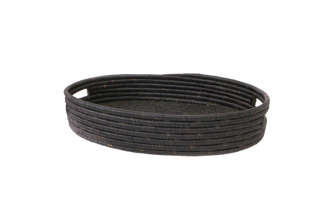 Intricately crafted with timeless tradition, this carefully dyed raffia fiber and sweet grass basket makes a stunning statement piece.