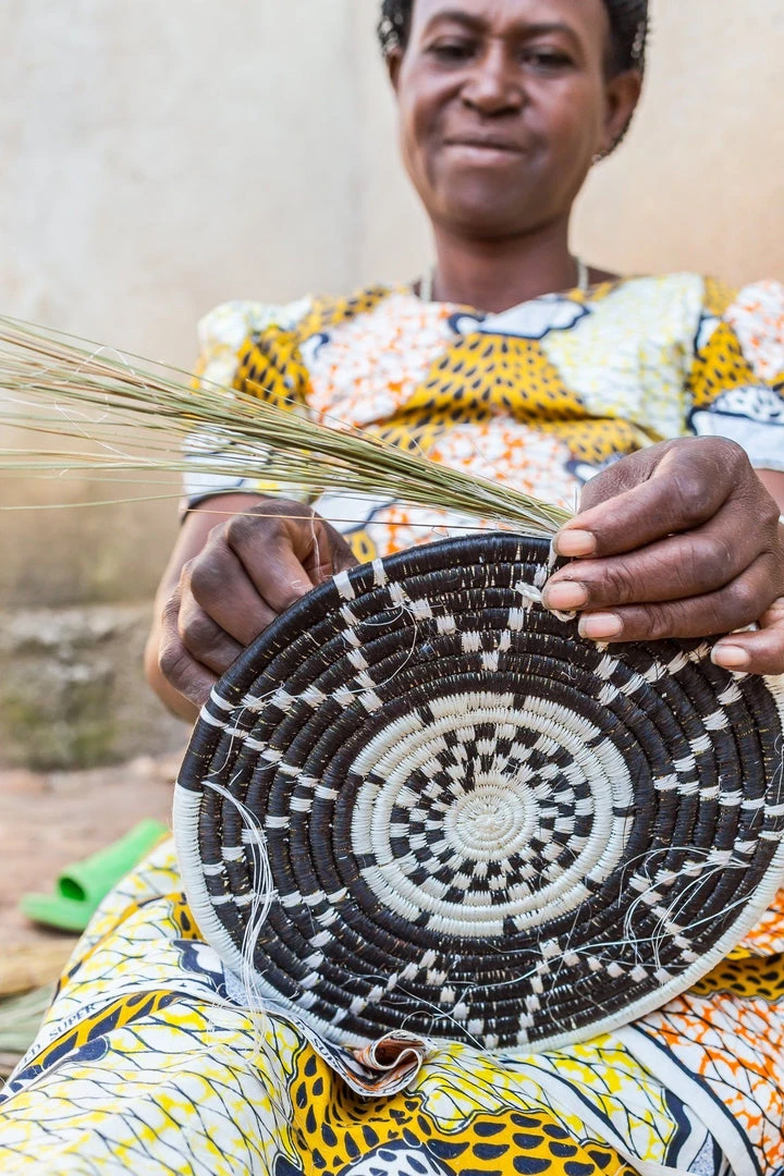This heat resistant trivet is perfect to set a tea kettle on or hot dish from the oven. With a woven loop attached on the back, they can be hung up as wall decor for a globally inspired feel. The sunburst pattern on these baskets is known as the “hope” design. Reflected on the Rwandan flag, this sunburst image stands for the county’s collective hope for a new dawn and brighter future.