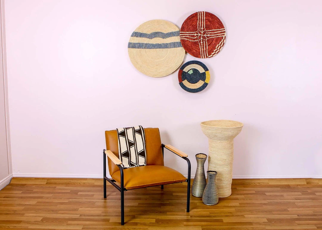 These intricate burgundy wall plates are designed to elevate any room with color and texture. Leave the woven plate as a stand-alone piece or pair with other plates or bowls to transform your space.