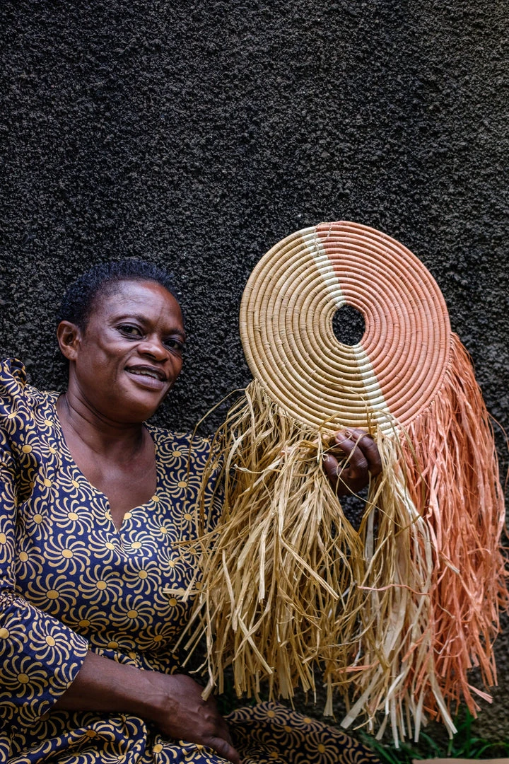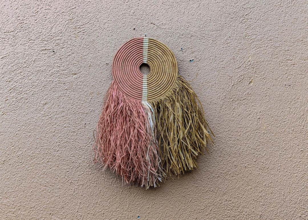 These raffia fringed discs are an incredible statement piece for your home decor. Style it with other plates and baskets, these ready to hang fringed chargers will do all the talking! The exquisite raffia fibers are woven into a disc and then left to hang for a dramatic flair.