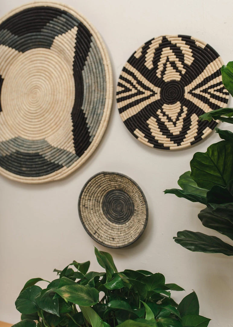 Style it in any room for a globally inspired feel. This beautiful wall plate is the perfect size as a stand alone piece or pair it with plates and trays for the cool color blocked family to create an eye-catching basket wall. All products are made by hand with love and vary slightly in color and size.