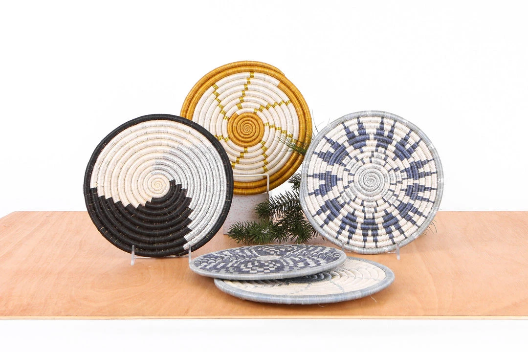 This heat resistant, metaliic silver hot pad is here to set a tea kettle on or hot dish from the oven. With a woven loop attached on the back, they can be hung up as wall decor for a soothing pop of color.