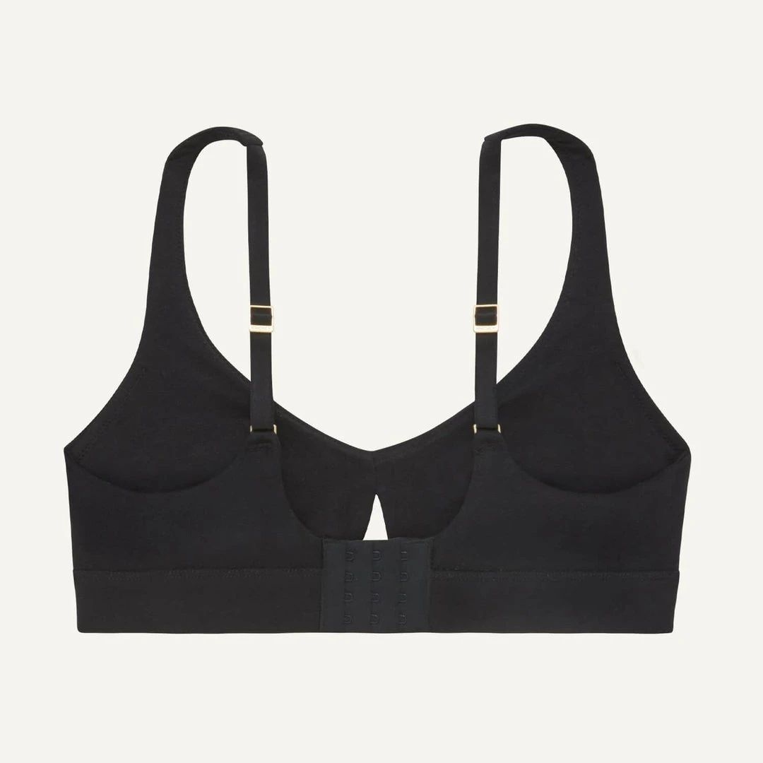 This Keyhole cut-out bralette brings a bit of interest to a supportive standby. Feel cute and comfortable with a wide underbust band, semi-adjustable straps and self-lined cups. Four rows of hook-and-eyes make this bralette fit for any bust, A-DD. For DDD or higher, size up one size.