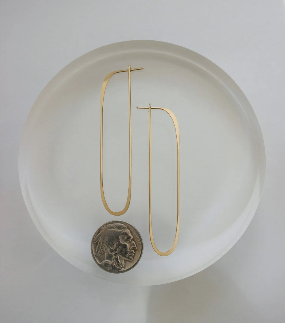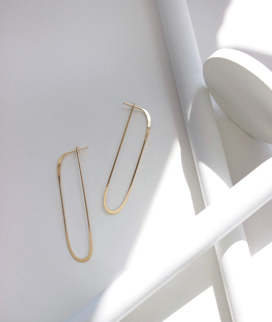 These simple statement earrings are fun, light, and easy to wear every day. Easily dressed up for a night out or worn with a t-shirt and jeans to add shine to a casual look. These shapes are free-formed and may vary slightly.