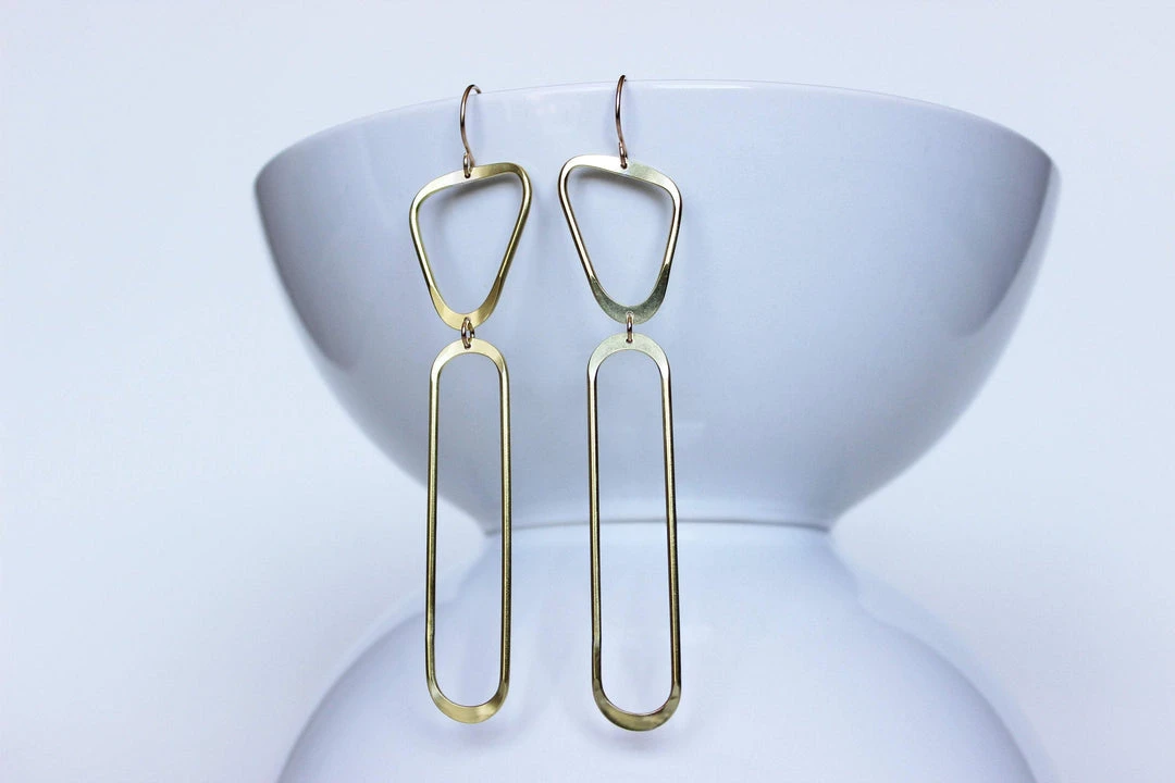 These architectural statement earrings are sculpted and carved in wax by hand, then cast. Easily dressed up for a night out or worn with a t-shirt and jeans to add shine to a casual look. These shapes are free formed and may vary subtly.