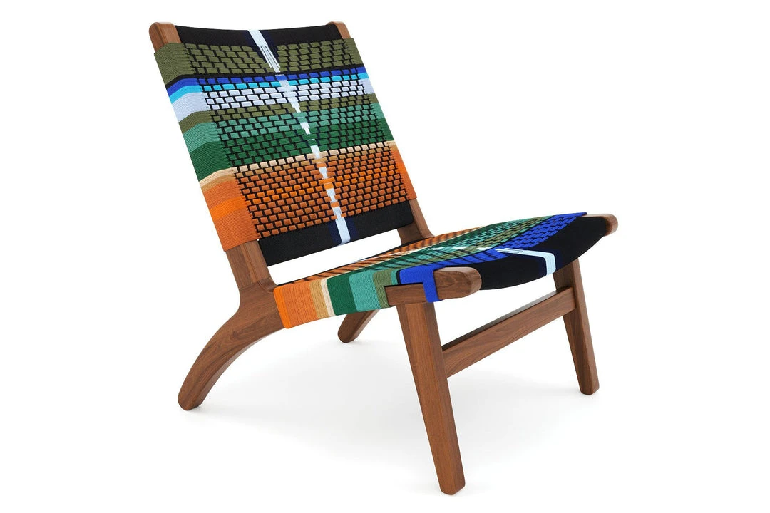 Stylish yet casual, the Masaya Lounge Chair features a minimal profile, handwoven seat and backrest, along with a solid wood frame. This chair is perfect as a statement piece or as your new favorite lounging spot. Mot Mot pattern is inspired by the Nicaraguan national bird, also known as the Guardabarranco. Pair with the matching ottoman to create a show stopping pop of color in any room.Â