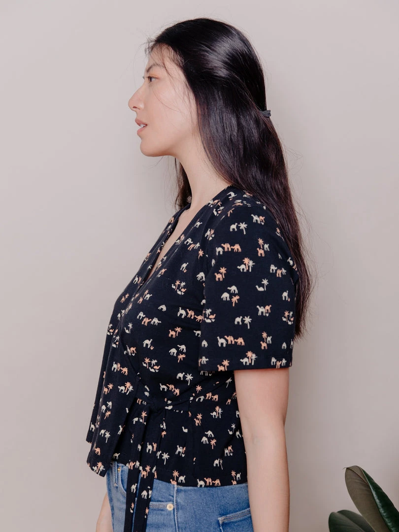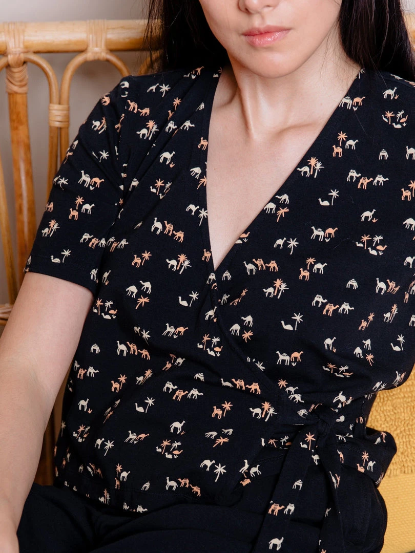 This organic cotton jersey top features a faux wrap v-neck front with an adjustable side tie. Pair with our Fae pants, or your favorite jeans and sneakers.