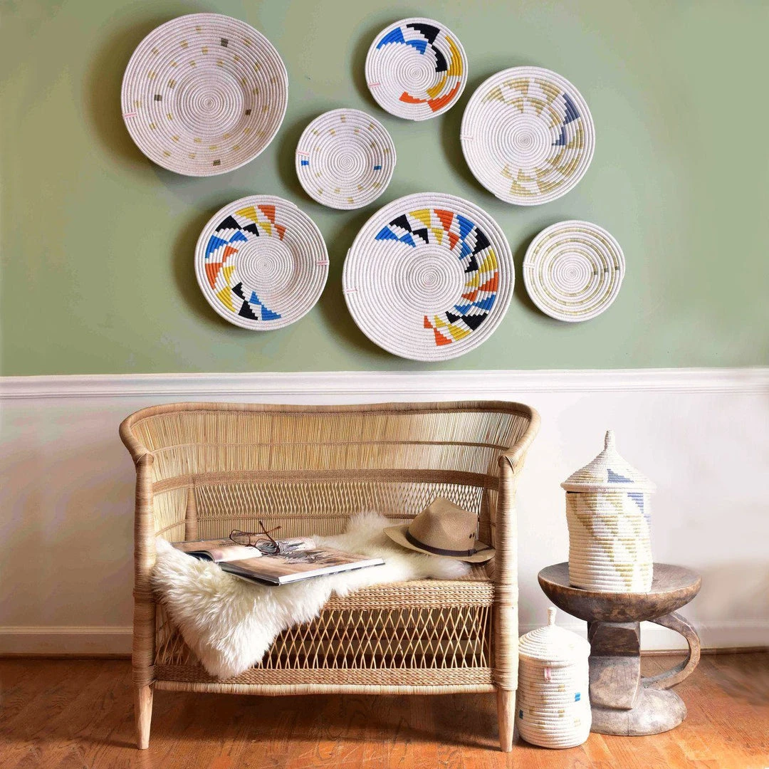 These baskets are accented with minimalist designs in colorful threads giving them a modern look, perfect for adding a handmade element to a contemporary space. Truly a purchase with purpose, every sale of these baskets directly benefits a refugee woman weaver and her family.