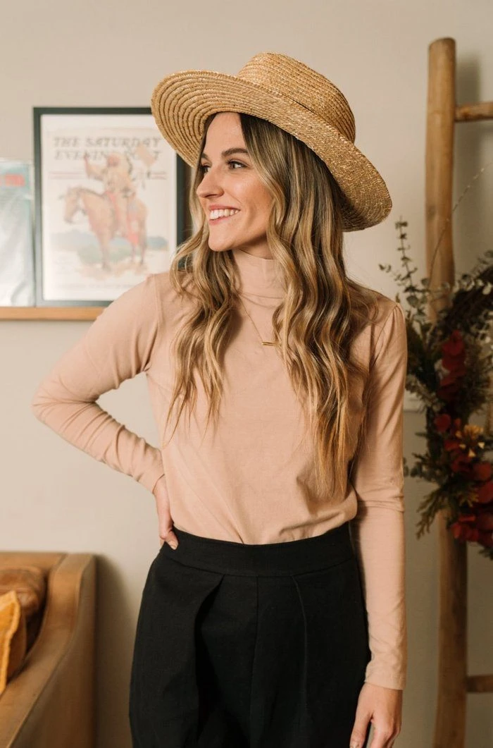 The layering piece you’ve been waiting for – a flattering mock-neck long sleeve to wear underneath a jumpsuit or paired with your favorite bottoms. Ultra-soft, not too fitted and not too loose.