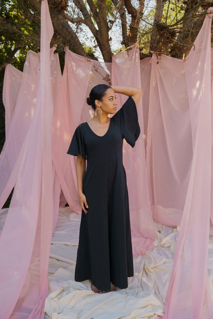 This all-occasion organic cotton jumpsuit features flowing flutter sleeves and an extra-long, nearly floor-sweeping pant leg. The Villa flowy jumpsuit is versatile and comfortable for a day of lounging, running around on weekdays, virtual meetings, or dressed up for special moments.