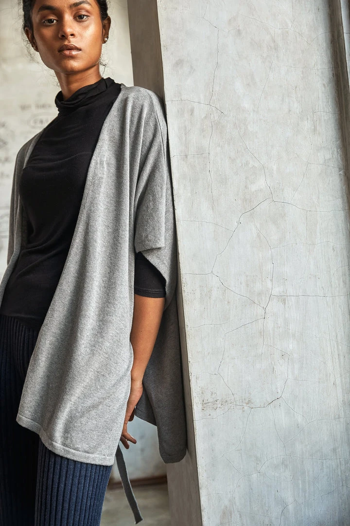 The lightweight Mist Cardigan is an easy throw over cardigan with tailored details. Made from a zero waste, organic cotton knit with an oversized fit for an elevated, casual look. Featuring a separate belt, ribbed trims, and a loose, no-armhole style.