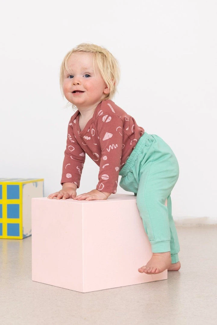 Organic, pre-shrunk harem pants in Seafoam. Stretchy, roomy, and comfortable for your little one.ย