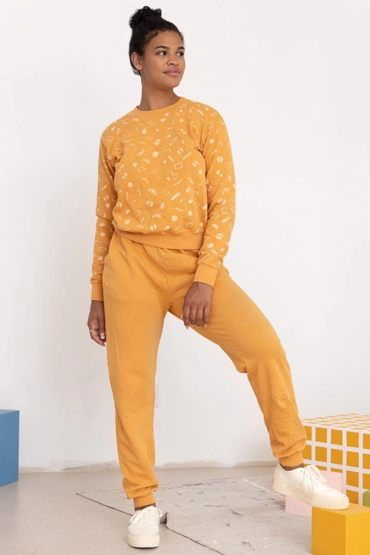 The Nicki jogger is ultra high-waisted, with comfortable pre-shrunk elastic and a long inseam. They are made of organic, USA-milled French terry that’s built to last. Wear them with the Max Squiggles Sweatshirt or the Jules Fruit Mock Neck.
