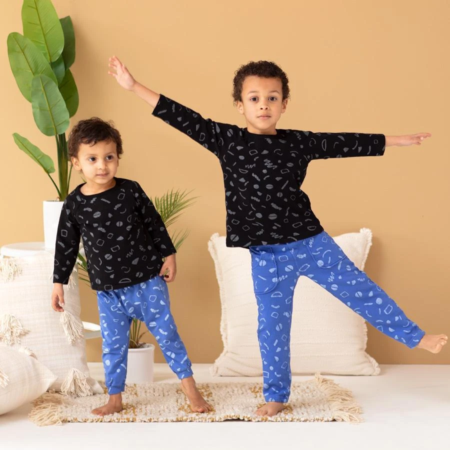 This super soft organic long sleeve raglan t-shirt is printed with North of West’s fun Squiggles print.