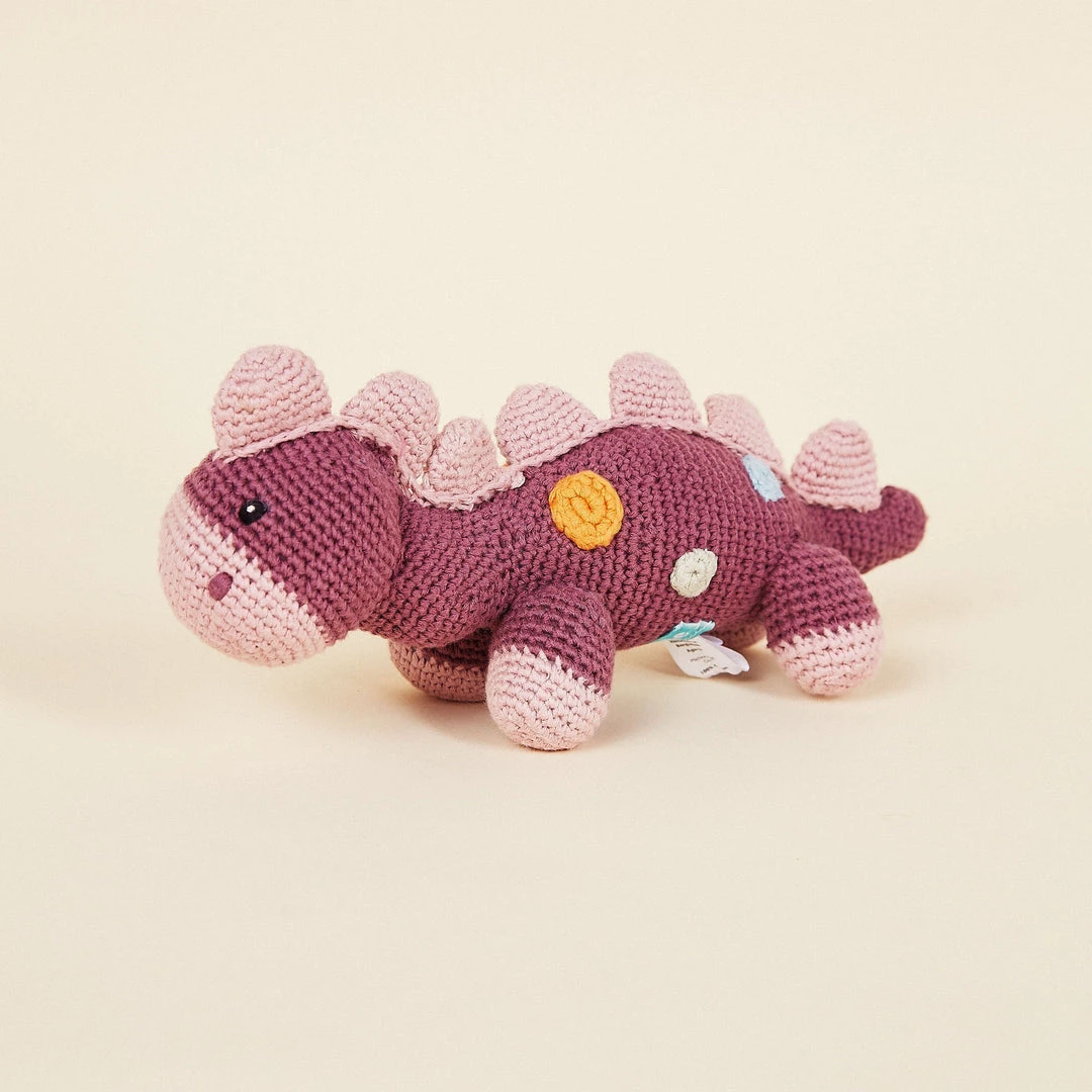 These dinosaur shaped rattles are handcrafted with care using organic cotton, making them safe for play. They’re soft in your baby’s hands and entertain while developing motor and cognitive skills.