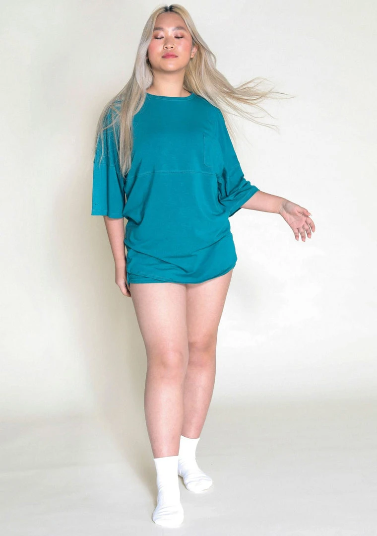 The Lourdes Lounging Tee is versatile, oversized, and gentle on your skin. Made from a blend of Tencel™ and Organic Cotton Jersey, giving you the silky feel of Tencel™ and breathability of soft cotton. Wear it with the matching Lourdes Lounge Shorts.