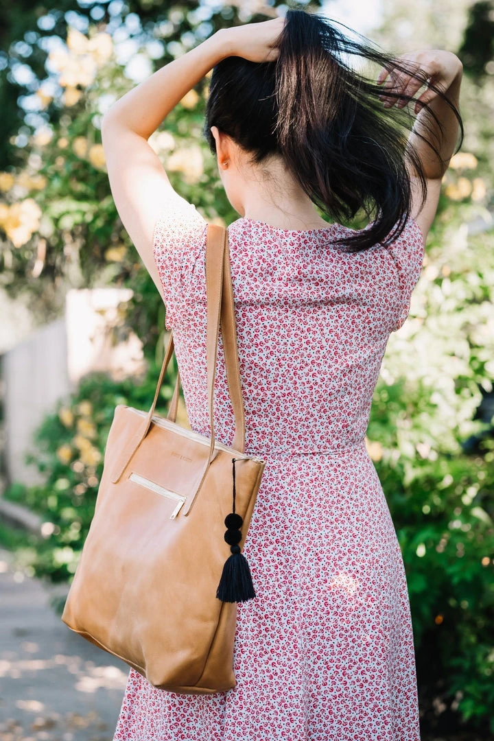 This classic black leather handbag was hand cut, hand assembled, and hand stitched by artisans in Ethiopia who received a fair wage. Please note that variations are to be expected of naturally treated leather.