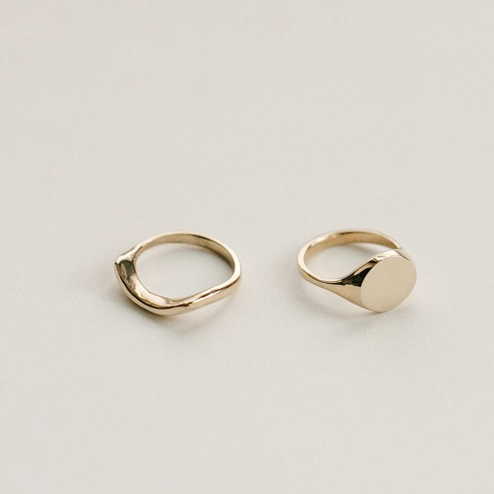 The organic shapes of this ring set are inspired by the sun rising over water. Made in small intentional batches.