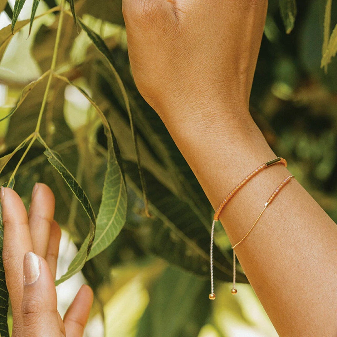This dainty and classic bracelet features delicate Japanese glass beads. Wear it alone or stack with other bracelets for a layered look. Use a polishing cloth to retain shine. Named for civil rights activist, Septima Poinsettia Clark.