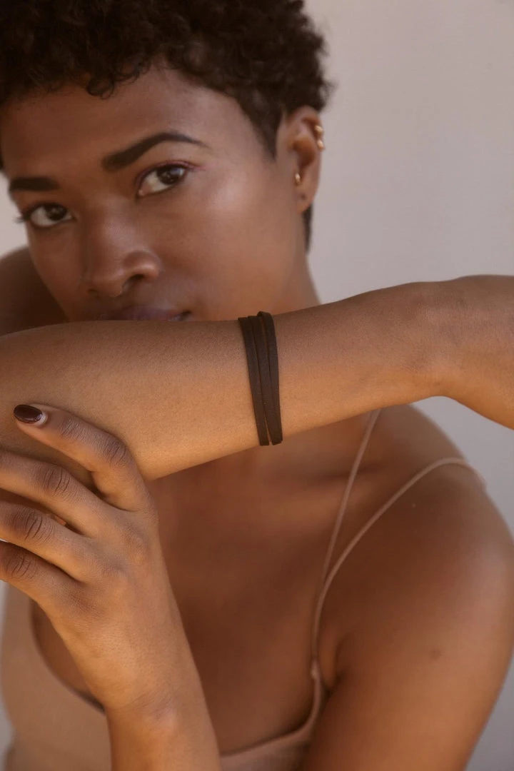 Delicate silken strands encircle the wrist as a bracelet or connect to create a necklace of multiple lengths. This style is modular, multiple bracelets can be connected (via magnets in bracelet’s closure) to create a necklace of infinite length. All colors (with the exception of Ebony) are achieved via botanical dyes. Due to the hand-dyed nature of this piece, slight variations in color are to be expected.
