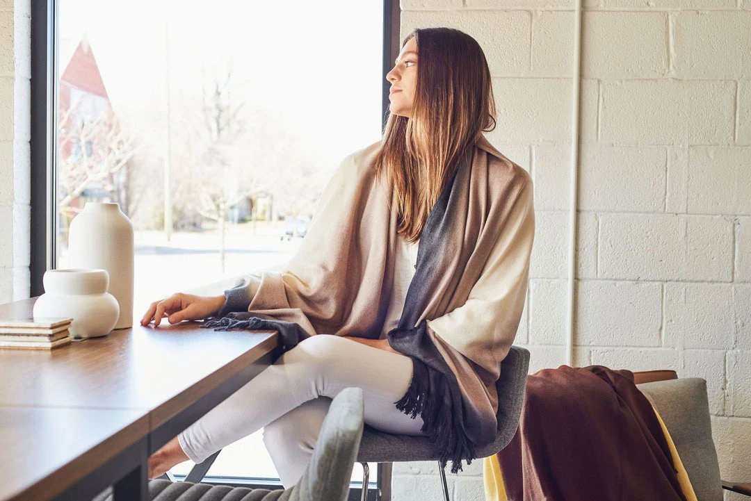 This throw’s soothing ombre effect will make any interior space stand out. The hand-rolled fringes give the throw unique character, luxuriously combining heritage value and high quality craftsmanship.