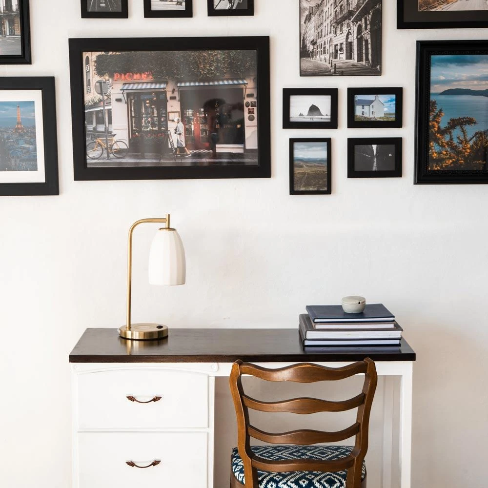 • Brass base includes wireless charger, USB-A Port
