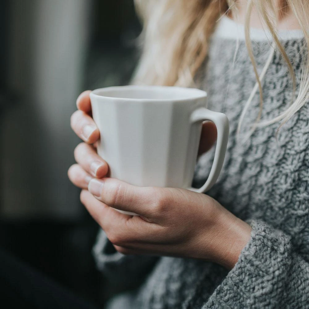 This modern porcelain Monday Mug is elegant, yet durable. Its designed to fit the curve of your palm and the handle will fit your fingers like a glove. Perfect for pour-over coffee, French press, or tea.
