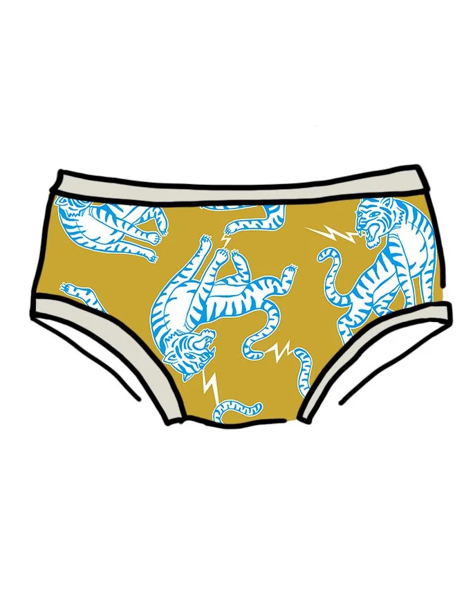 These Easy Tigers are the purrrfect addition to your Thundies collection. Designed to sit in the natural crease at the top of the leg, cover your bum, and reach to your high hip area. The waist and leg bands are constructed in the same fabric as the body eliminating the need for the addition of nasty, grippy elastic. Thunderpants USAÂ tests every lot of fabric for ultimate performance.