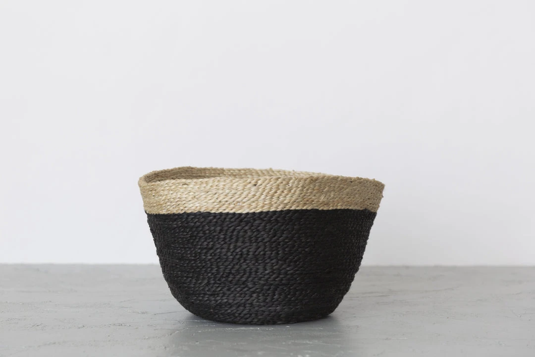 These jute bowls are perfect for storing fruits and vegetables in the kitchen or kids toys and craft supplies. The charcoal color is derived from seeds.